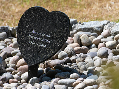 Natural long lasting granite plaques are engraved with a personal dedication before placing on a communal memorial set within our Garden of Remembrance. This is usually a good option if you require a low maintenance memorial.